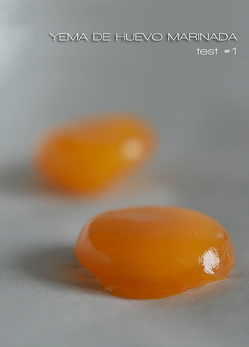 Y mientras preparo el peaso de artículo del fin de semana os dejo, como ya os anunciaba, unos apuntes del primer experimento con la yema de huevo marinada.