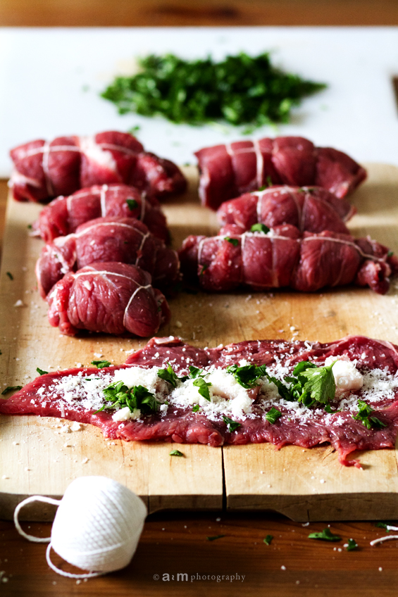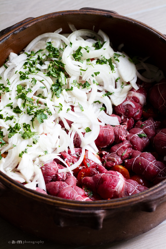 Como segundo unos rollitos de carne. Una cocción lentísima para un plato que merece la pena todo el trabajo que da.